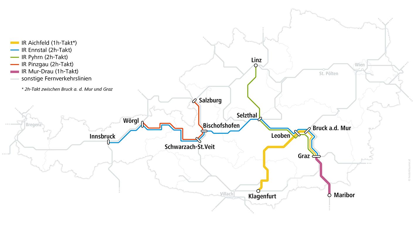 Az új menetrend szerint számos közvetlen járatot vehetnek igénybe az utasok, amelyek még közelebb hozzák egymáshoz Grazot, Villachot, Salzburgot és még München is: naponta 20-szor indul közvetlen járat Villachból Salzburgba, 7-szer Grazból Salzburgba és 5-ször Grazból Münchenbe!